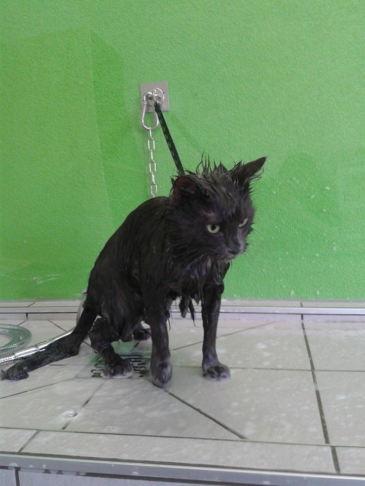Nuba (la mienne) au bain et qui s'occupe de l'accueil une fois toute belle!